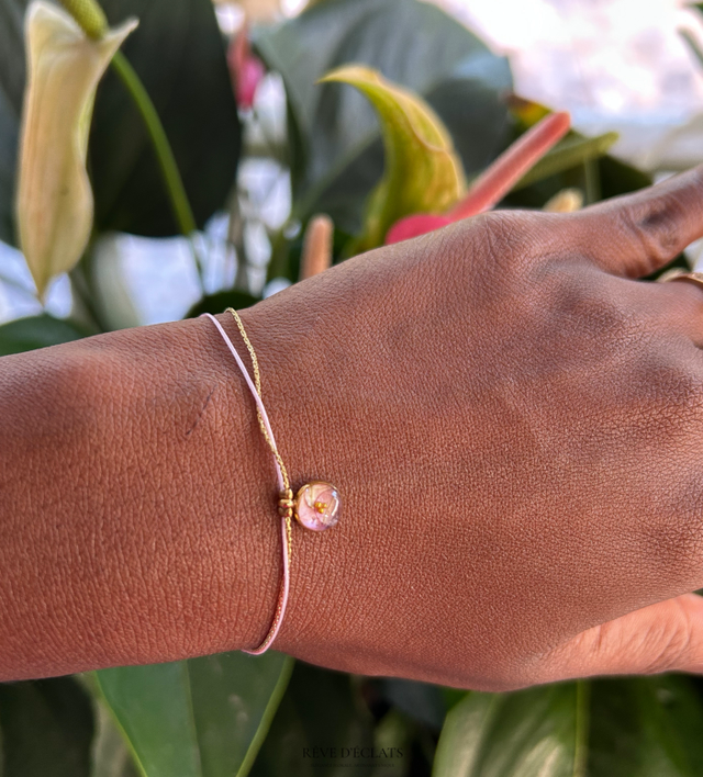 Les fleurs utilisées sont naturelles, séchées avec soin et encapsulées dans de la résine.