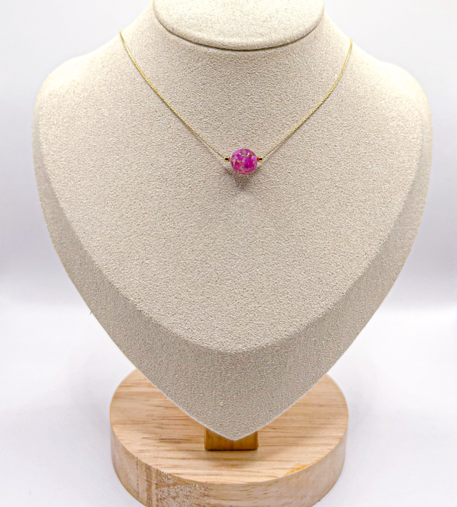 Les fleurs utilisées sont naturelles, séchées avec soin et encapsulées dans de la résine.